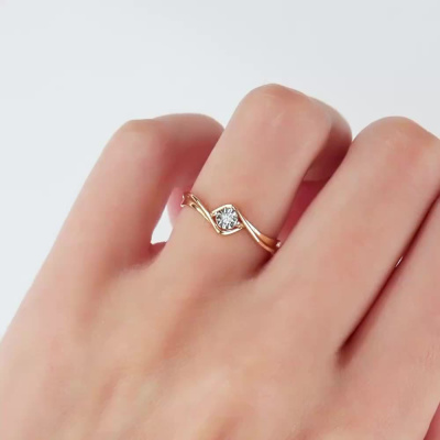 Кольцо с 1 бриллиантом природным, 0.01 карат, огранка круг 57 граней, цвет 3, чистота 5, тип огранки А; Желтое золото 585 пробы.