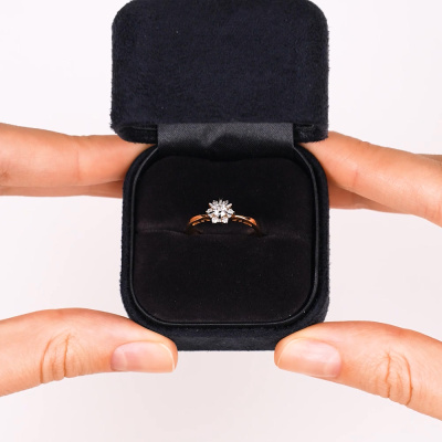Кольцо с 1 бриллиантом природным, 0.152 карат, огранка круг 57 граней, цвет 3, чистота 6, тип огранки А; 6 бриллиантами природными, 0.089 карат, огранка круг 57 граней, цвет 3, чистота 6, тип огранки А; Розовое золото 585 пробы.