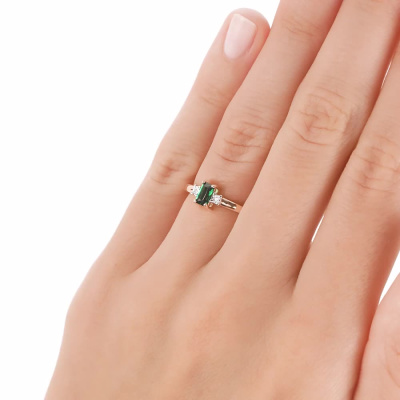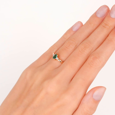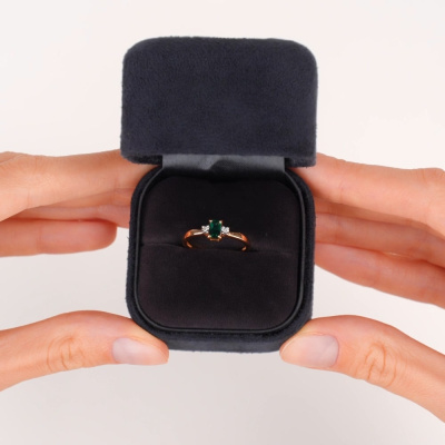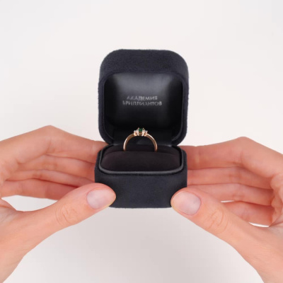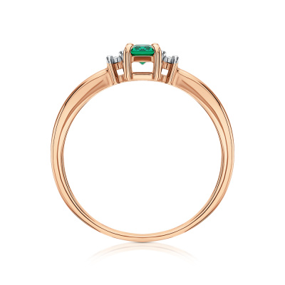 Кольцо с 2 бриллиантами природными, 0.008 карат, огранка круг 17 граней, цвет 2, чистота 2, тип огранки А; 1 гидротермальным изумрудом, 0.21 карат, тип огранки Б; Розовое и белое золото 585 пробы.