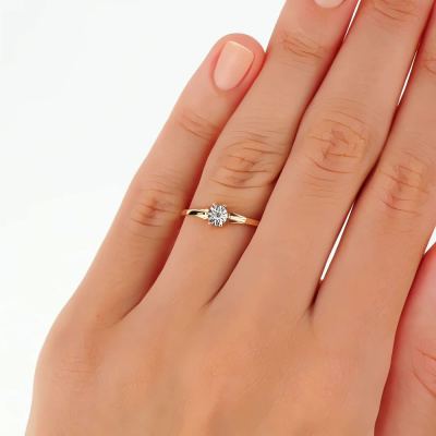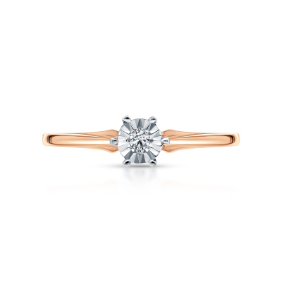 Кольцо с 1 бриллиантом природным, 0.01 карат, огранка круг 57 граней, цвет 4, чистота 5, тип огранки А; Розовое золото 585 пробы.