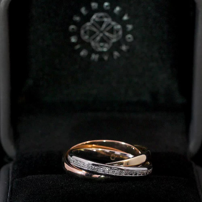 Кольцо с 47 бриллиантами природными, 0.13 карат, огранка круг 17 граней, цвет 2, чистота 2, тип огранки А; Розовое золото 585 пробы.