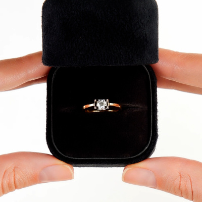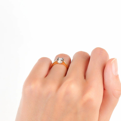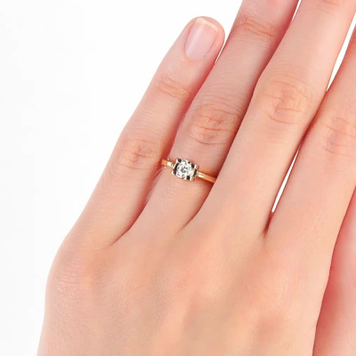Кольцо с 1 бриллиантом природным, 0.201 карат, огранка круг 57 граней, цвет 3, чистота 6, тип огранки А; Желтое золото 585 пробы.