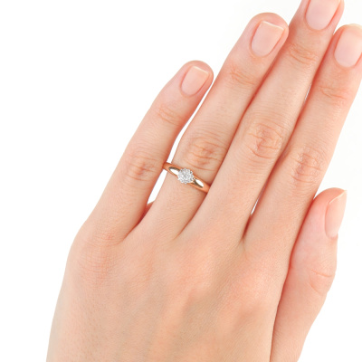 Кольцо с 19 бриллиантами природными, 0.07 карат, огранка круг 17 граней, цвет 2, чистота 2, тип огранки А; Розовое золото 585 пробы.