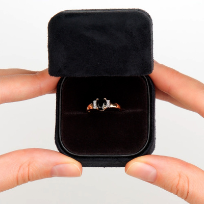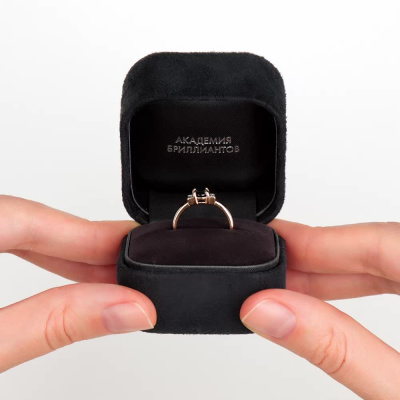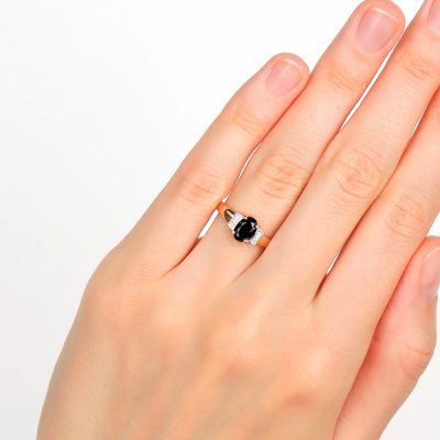 Кольцо с 6 бриллиантами природными, 0.02 карат, огранка круг 17 граней, цвет 2, чистота 2, тип огранки А; 1 шпинелью черной природной, 0.87 карат, тип огранки Б; Розовое золото 585 пробы.