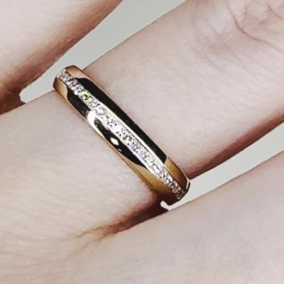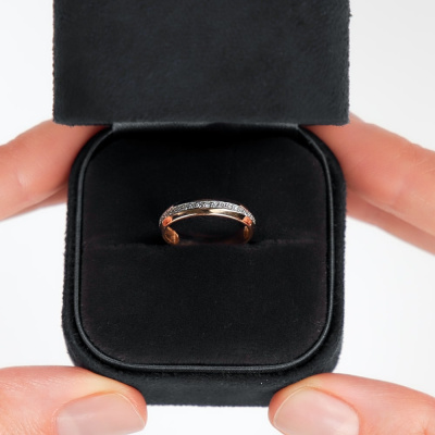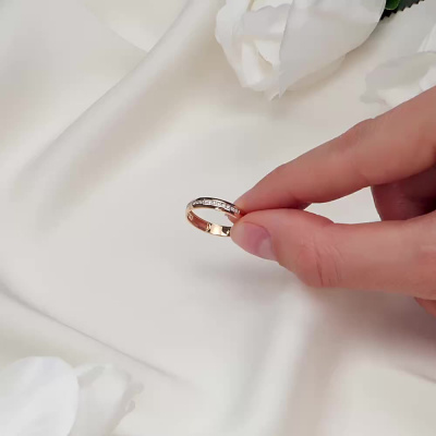 Кольцо с 19 бриллиантами природными, 0.07 карат, огранка круг 17 граней, цвет 2, чистота 2, тип огранки Б; Розовое золото 585 пробы.