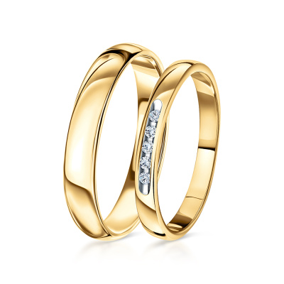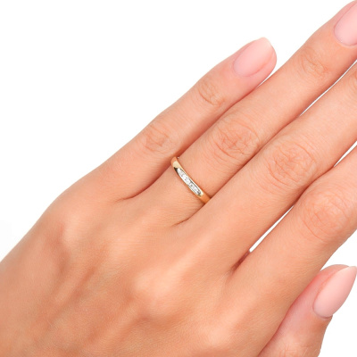 Кольцо с 5 бриллиантами природными, 0.03 карат, огранка круг 57 граней, цвет 3, чистота 6, тип огранки А; Желтое золото 585 пробы.