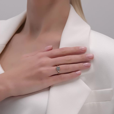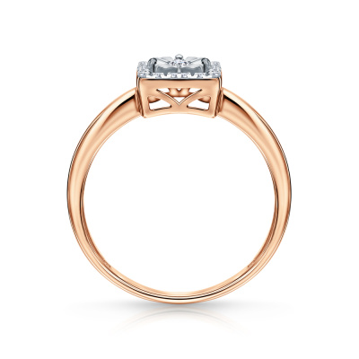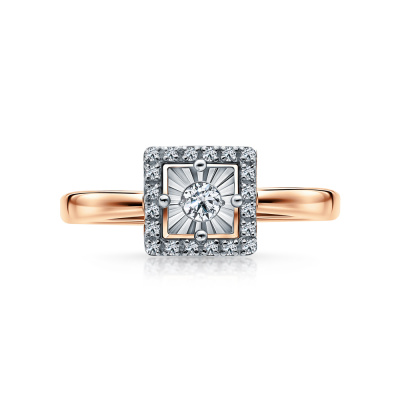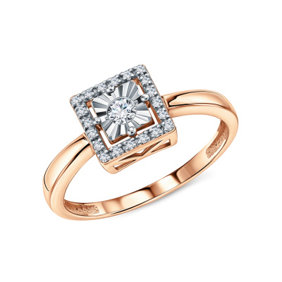 Кольцо с 1 бриллиантом, 0.05 карат, огранка круг 57 граней, цвет 3, чистота 6, тип огранки А; 20 бриллиантами, 0.06 карат, огранка круг 17 граней, цвет 2, чистота 2, тип огранки Б; Розовое и белое золото 585 пробы.