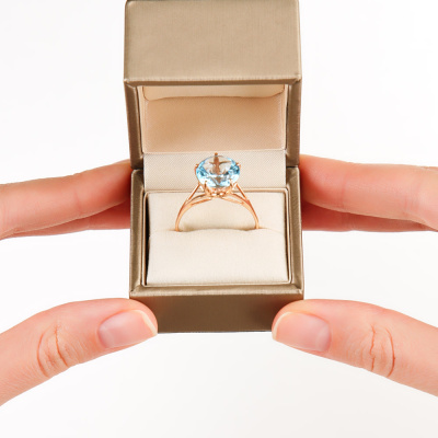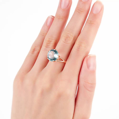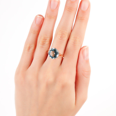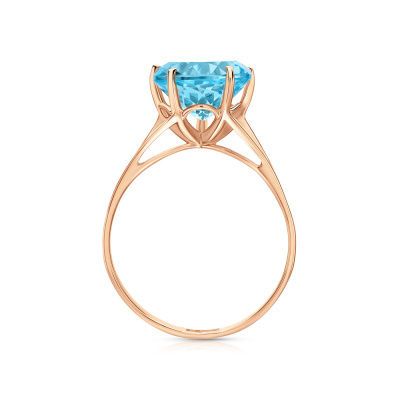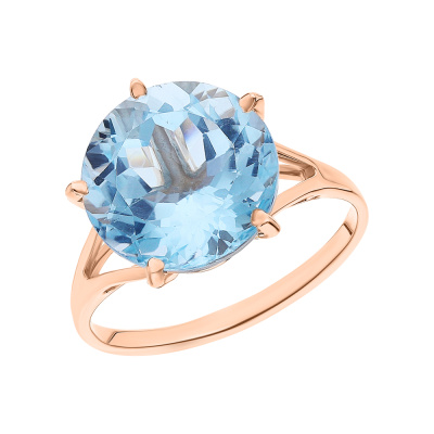 Кольцо с 1 топазом скай природным, 6.8 карат; Розовое золото 585 пробы.