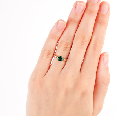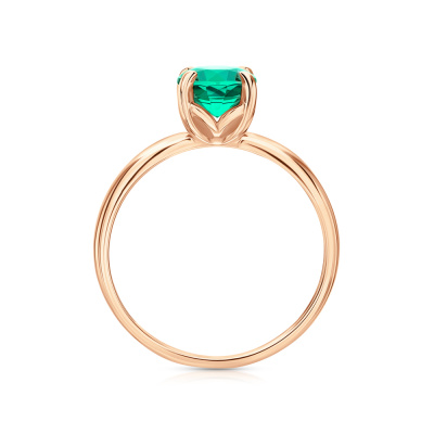 Изысканное кольцо с гидротермальным изумрудом весом 0.844 карата, Б-огранка обеспечивает ему элегантный вид. Красивое сочетание с розовым золотом 585 пробы придает этому украшению особую изысканность. Кольцо идеально подойдет для особых моментов в вашей жизни или в качестве ценного дополнения к вашей коллекции украшений.