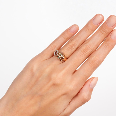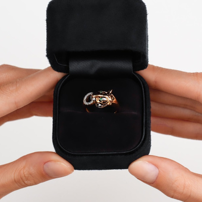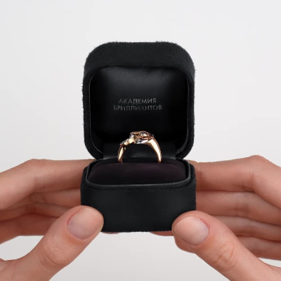 Кольцо с 12 бриллиантами природными, 0.042 карат, огранка круг 17 граней, цвет 2, чистота 2; 2 изумрудами природными, 0.009 карат, цвет 3, чистота 3; Розовое золото 585 пробы.