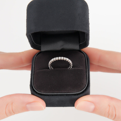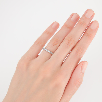Кольцо с 27 бриллиантами природными, 0.907 карат, огранка круг 57 граней, цвет 3, чистота 6, тип огранки А; Белое золото 585 пробы.
