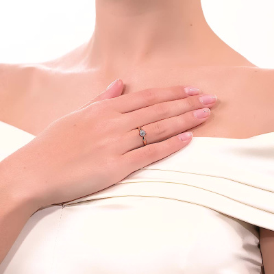 Кольцо с 1 бриллиантом природным, 0.05 карат, огранка круг 57 граней, цвет 3, чистота 6, тип огранки А; 8 бриллиантами природными, 0.06 карат, огранка круг 57 граней, цвет 3, чистота 6, тип огранки А; Розовое золото 585 пробы.