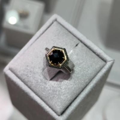 Золотое кольцо с бриллиантами чёрными природными и агатами природными