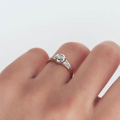 Кольцо с 1 бриллиантом природным, 0.05 карат, огранка круг 57 граней, цвет 3, чистота 5, тип огранки А; 2 бриллиантами природными, 0.03 карат, огранка круг 57 граней, цвет 3, чистота 5, тип огранки А; 2 бриллиантами природными, 0.01 карат, огранка круг 57 граней, цвет 3, чистота 5, тип огранки А; Розовое и белое золото 585 пробы.