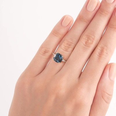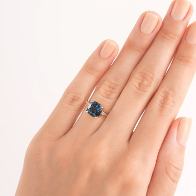 Кольцо с 10 бриллиантами природными, 0.02 карат, огранка круг 17 граней, цвет 2, чистота 2, тип огранки А; 1 топазом лондон природным, 2.4 карат; Розовое золото 585 пробы.