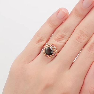 Насыщенный и страстный ярко-красный гранат, заключенный в роскошную золотую оправу. Гранат - символ любви, верности и мужества.