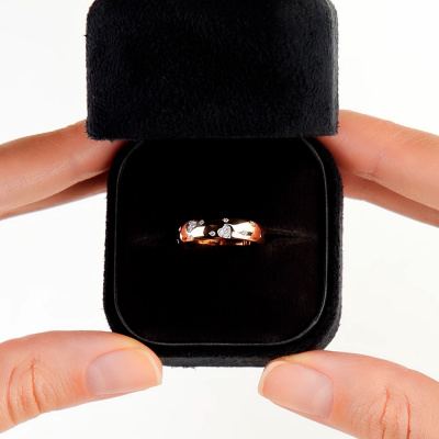 Кольцо с 14 бриллиантами природными, 0.05 карат, огранка круг 17 граней, цвет 2, чистота 2, тип огранки А; Розовое золото 585 пробы.