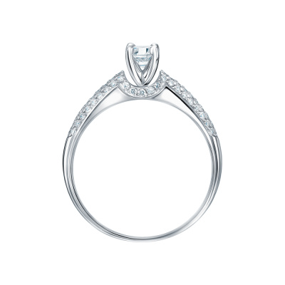 Кольцо с 1 бриллиантом природным, 0.3 карат, огранка круг 57 граней, цвет 3, чистота 6, тип огранки А; 66 бриллиантами природными, 0.2 карат, огранка круг 17 граней, цвет 2, чистота 2, тип огранки А; Белое золото 585 пробы.
