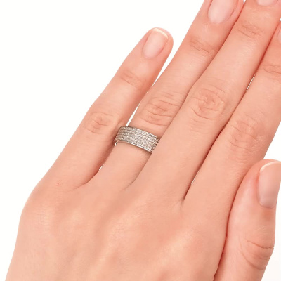 Кольцо с 320 бриллиантами природными, 0.57 карат, огранка круг 17 граней, цвет 2, чистота 2, тип огранки А; Белое золото 585 пробы.