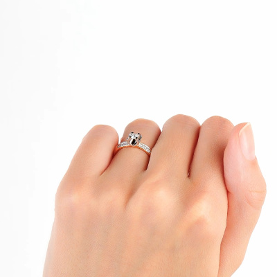 Кольцо с 1 бриллиантом природным, 0.155 карат, огранка круг 57 граней, цвет 3, чистота 6, тип огранки А; 20 бриллиантами природными, 0.045 карат, огранка круг 57 граней, цвет 3, чистота 6, тип огранки А; Розовое золото 585 пробы.