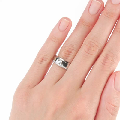 Кольцо с 1 бриллиантом природным, 0.2 карат, огранка круг 57 граней, цвет 3, чистота 6, тип огранки А; 21 бриллиантом природным, 0.08 карат, огранка круг 17 граней, цвет 2, чистота 2, тип огранки А; Платина 950 пробы.