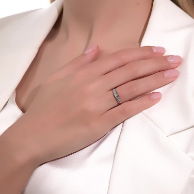 Кольцо с 1 бриллиантом природным, 0.25 карат, огранка круг 57 граней, цвет 3, чистота 6, тип огранки А; 2 бриллиантами природными, 0.2 карат, огранка круг 57 граней, цвет 3, чистота 6, тип огранки А; 2 бриллиантами природными, 0.12 карат, огранка круг 57 граней, цвет 3, чистота 6, тип огранки А; 2 бриллиантами природными, 0.06 карат, огранка круг 57 граней, цвет 3, чистота 6, тип огранки А; Платина 950 пробы.