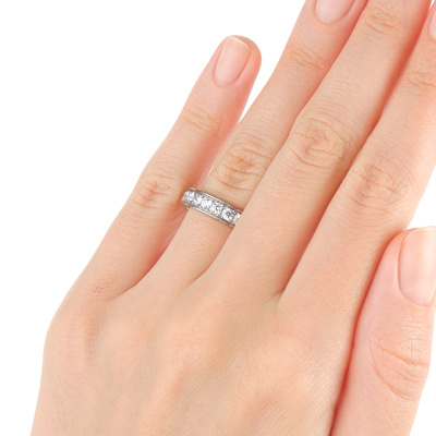 Кольцо с 22 бриллиантами природными, 1.25 карат, огранка круг 57 граней, цвет 3, чистота 6, тип огранки А; 44 бриллиантами природными, 0.08 карат, огранка круг 17 граней, цвет 2, чистота 2, тип огранки А; Платина 950 пробы.