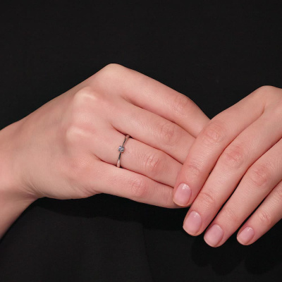 Кольцо с 1 бриллиантом природным, 0.1 карат, огранка круг 57 граней, цвет 3, чистота 6, тип огранки А; Платина 950 пробы.
