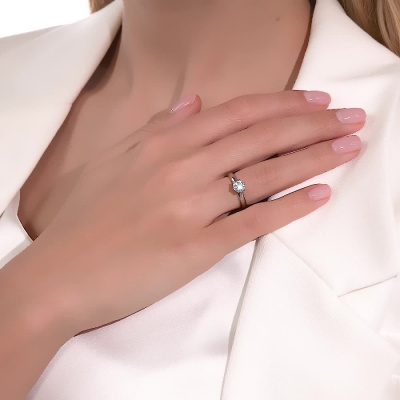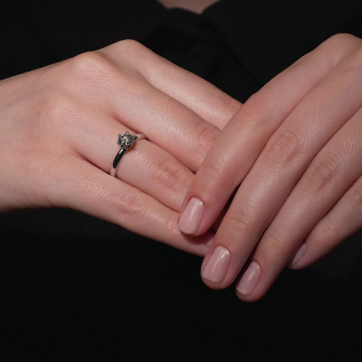 Кольцо с 1 бриллиантом природным, 0.9 карат, огранка круг 57 граней, цвет 5, чистота 6, тип огранки А; Платина 950 пробы.