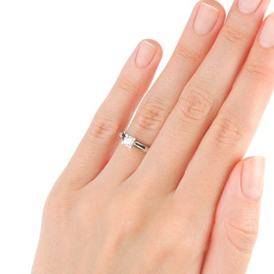 Кольцо с 1 бриллиантом природным, 0.28 карат, огранка круг 57 граней, цвет 3, чистота 6, тип огранки А; Платина 950 пробы.