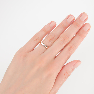 Кольцо с 4 бриллиантами природными, 0.02 карат, огранка круг 17 граней, цвет 2, чистота 2, тип огранки Б; Розовое золото 585 пробы.