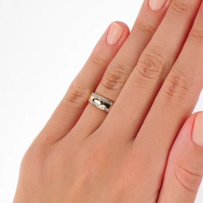 Кольцо с 38 бриллиантами природными, 0.14 карат, огранка круг 17 граней, цвет 2, чистота 2, тип огранки Б; Розовое золото 585 пробы.