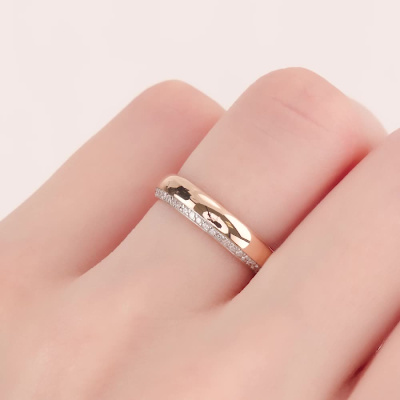 Кольцо с 49 бриллиантами природными, 0.207 карат, огранка круг 17 граней, цвет 2, чистота 2, тип огранки Б; Розовое золото 585 пробы.