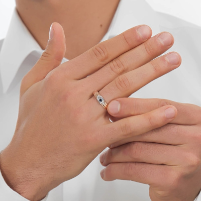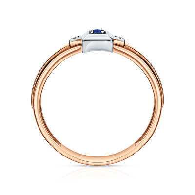 Золотое кольцо с бриллиантами природными и сапфирами выращенными