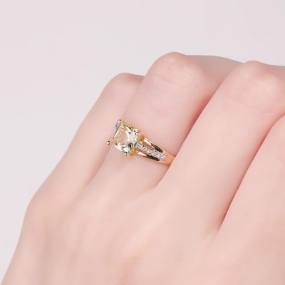 Золотое кольцо с лимонным кварцем и бриллиантами
