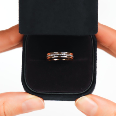 Кольцо с 29 бриллиантами природными, 0.11 карат, огранка круг 17 граней, цвет 2, чистота 2, тип огранки А; Розовое золото 585 пробы.