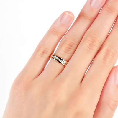 Кольцо с 29 бриллиантами природными, 0.12 карат, огранка круг 17 граней, цвет 2, чистота 2, тип огранки А; Желтое золото 585 пробы.