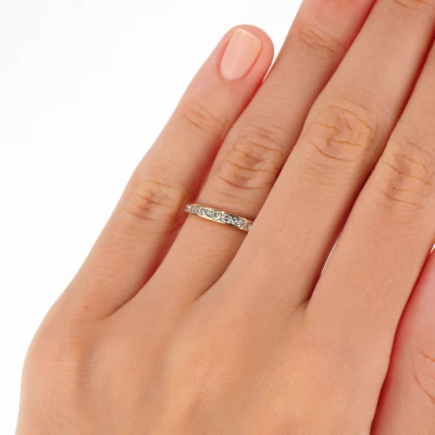 Кольцо с 9 бриллиантами природными, 0.26 карат, огранка круг 57 граней, цвет 3, чистота 6, тип огранки А; Розовое золото 585 пробы.