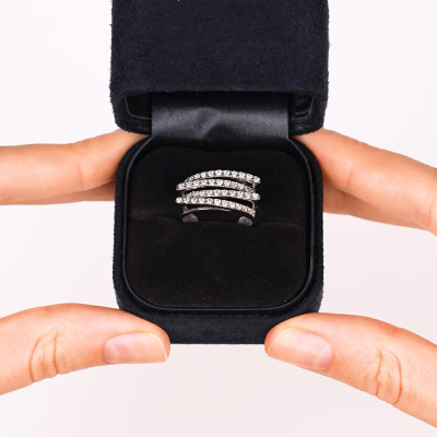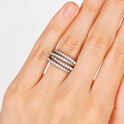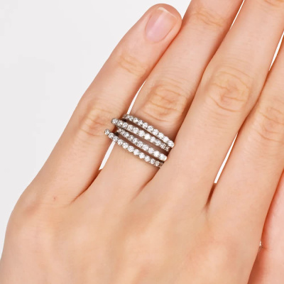 Кольцо с 45 бриллиантами природными, 0.535 карат, огранка круг 57 граней, цвет 3, чистота 6, тип огранки А; Белое золото 585 пробы.