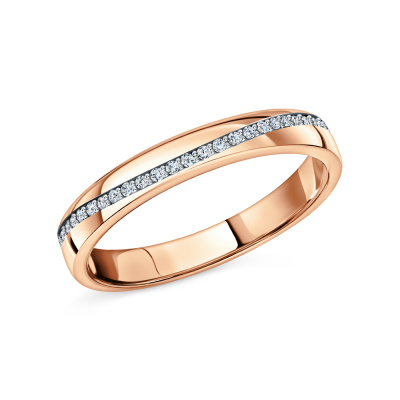 Кольцо с 25 бриллиантами природными, 0.06 карат, огранка круг 17 граней, цвет 2, чистота 2, тип огранки Б; Розовое золото 585 пробы.