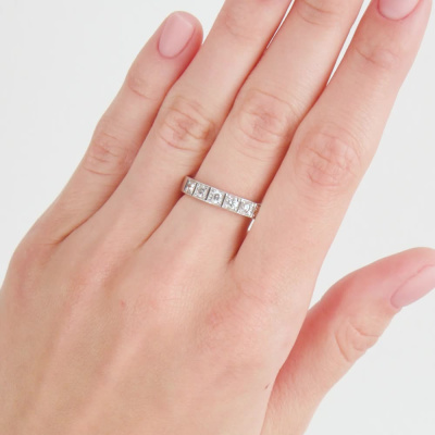 Кольцо с 8 бриллиантами природными, 0.63 карат, огранка круг 57 граней, цвет 4, чистота 6, тип огранки А; Белое золото 585 пробы.