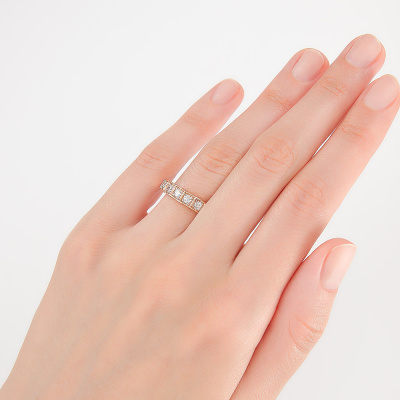 Кольцо с 8 бриллиантами природными, 0.63 карат, огранка круг 57 граней, цвет 4, чистота 6, тип огранки А; Розовое золото 585 пробы.