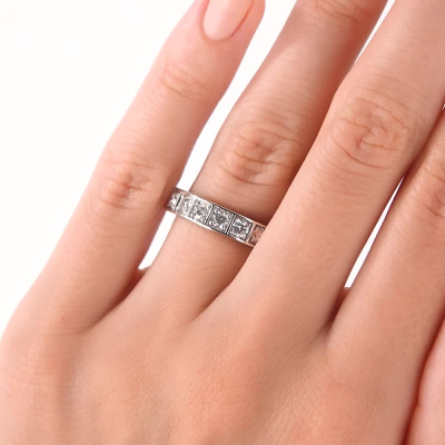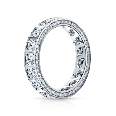 Кольцо с 16 бриллиантами природными, 1.31 карат, огранка круг 57 граней, цвет 3, чистота 6, тип огранки А; 110 бриллиантами природными, 0.35 карат, огранка круг 17 граней, цвет 2, чистота 2, тип огранки Б; Белое золото 585 пробы.
