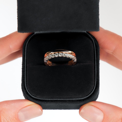 Кольцо с 11 бриллиантами природными, 0.488 карат, огранка круг 57 граней, цвет 4, чистота 6, тип огранки А; Розовое золото 585 пробы.