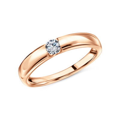 Кольцо с 1 бриллиантом природным, 0.13 карат, огранка круг 57 граней, цвет 3, чистота 6, тип огранки А; Розовое золото 585 пробы.