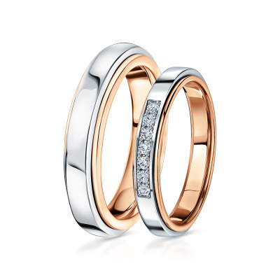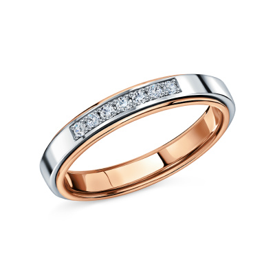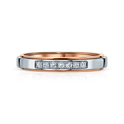 Кольцо с 7 бриллиантами, 0.09 карат, огранка круг 57 граней, цвет 3, чистота 7, тип огранки А; Розовое и белое золото 585 пробы.