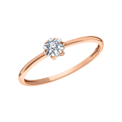 Кольцо с 1 бриллиантом природным, 0.02 карат, огранка круг 57 граней, цвет 4, чистота 6, тип огранки А; Розовое золото 585 пробы.