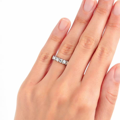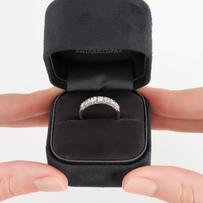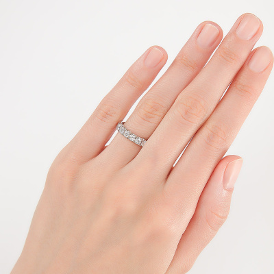 Кольцо с 7 бриллиантами природными, 0.593 карат, огранка круг 57 граней, цвет 4, чистота 7, тип огранки А; Белое золото 585 пробы.