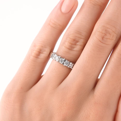 Кольцо с 7 бриллиантами природными, 0.64 карат, огранка круг 57 граней, цвет 4, чистота 7, тип огранки А; Белое золото 585 пробы.