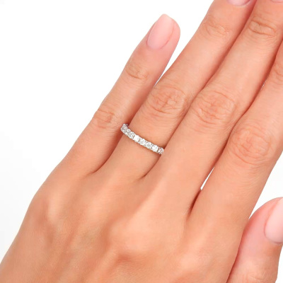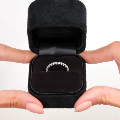Кольцо с 25 бриллиантами природными, 0.74 карат, огранка круг 57 граней, цвет 4, чистота 6, тип огранки А; Белое золото 585 пробы.